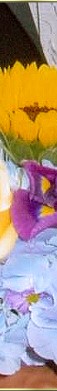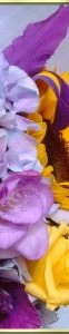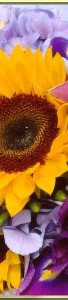Lavender flowers, golden yellow sunflowers, yellow roses,