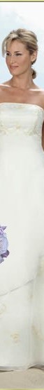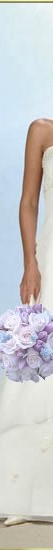 Bridal gown -- bride's bouquet of shades of lavender roses with blue