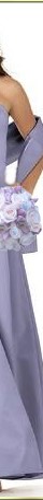 Lavender bridesmaid dress with bouquet of lavender roses sprinkled with blue