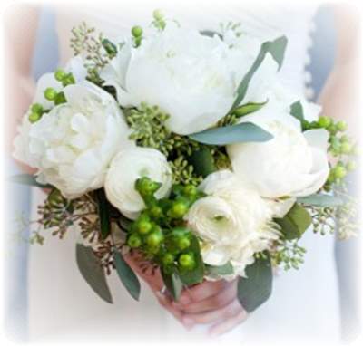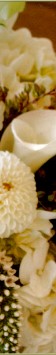 Sparkling whites, creams and ivories -- roses, stephanotis, calla lily, hydrangea, peony, chrysanthemum mixed with