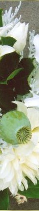 Sparkling whites, creams and ivories -- roses, stephanotis, calla lily, hydrangea, peony, chrysanthemum mixed with